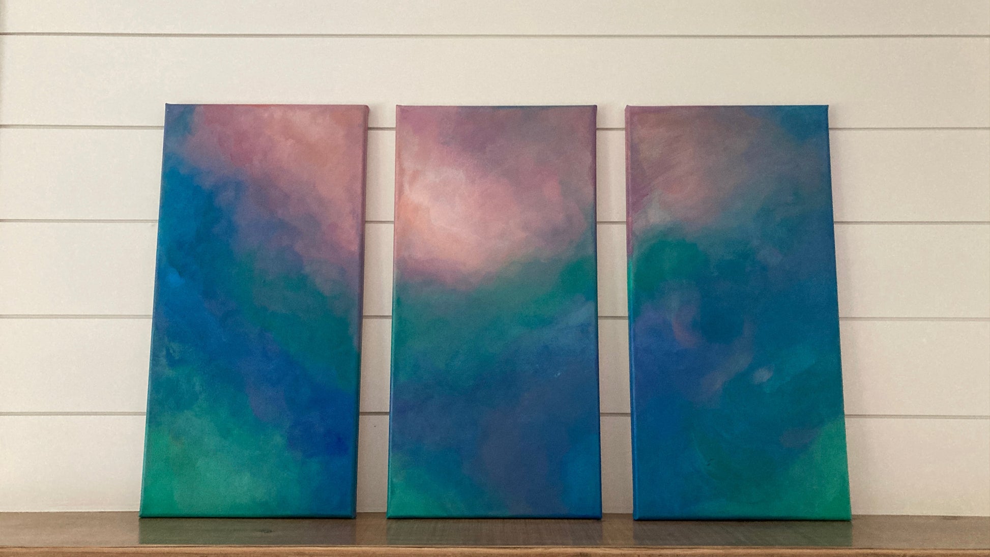 Total size of "A Dancing, Sentimental Aurora" Triptych (three canvas prints) 24" x 36"